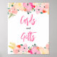 Spring pink boho chic garden floral bridal shower card and gifts sign featuring pretty hand painted original watercolor floral in bright pink, yellow. orange and lush greenery leaves and foliage. A pretty floral bridal themed party perfect, for outdoor brunch, garden party or spring celebrations