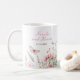 This beautiful and elegant wedding mug with wildflowers in pink, and cute butterflies. Perfect for a spring or summer wedding. The words can be changed to suit your own details or requirements