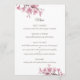 Spring Pink cherry blossom. Floral wedding Menu