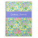 A very pretty, customisable spiral notebook, with a pattern of pink, yellow and blue primroses and a sky blue panel for your name or the title of the notebook, from a handpainted watercolour design by Judy Adamson. Would also make an excellent journal.