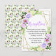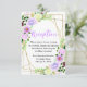 This fun and whimsical wedding reception enclosure card features watercolor purple flowers and foliage on a gold geometric frame. The text combines handwritten script and serif fonts for a stylish and modern look. This is perfect for a spring or summer rustic wedding.