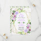 This fun and whimsical save the date invitation features watercolor purple flowers and foliage on a gold geometric frame. The text combines handwritten script and serif fonts for a stylish and modern look. This is perfect for a spring or summer rustic wedding.