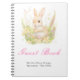 Pretty baby shower guest book with an adorable rabbit and pink and yellow flowers. Perfect for a spring or summer baby shower. The words can be changed to suit your own details or requirements