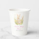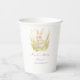 Pretty baby shower paper cup with an adorable rabbit and pink and yellow flowers. Perfect for a spring or summer baby shower. The words can be changed to suit your own details or requirements