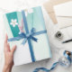 Capture the freshness of an April shower with this abstract spring rain gift wrap. Featuring watercolor drips in mint and teal with delicate white blossom silhouettes, it brings a unique, artistic vibe to your Easter presents. A perfect choice for those who love cool, calming spring tones.