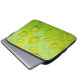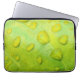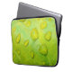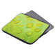 This 13” Laptop Sleeve features an original abstract photograph by ZoeSPEAK of raindrops on a leaf. In the closeup photo, we see the texture and veins of the leaf magnified in the contours of the water droplets. The shiny yellow green leaf reflects the blue and yellow of the sky and sunlight.