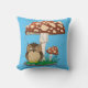 Grumpy little owl hiding under a mushroom as an umbrella away from the rain.