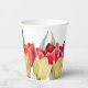 Elegant floral design featuring spring watercolor red and yellow tulips.