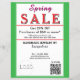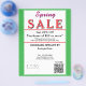 Jewelry or any business type supplies. Bright springtime green border. Insert Sale price and date details. Upload Your Logo, or delete to leave area blank. Insert Name and Website or other contact QR Code. Spring written in pink script. Sale written in large red typography. Thank You is written inside large white heart on backside. Original Design by TamiraZDesigns.