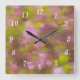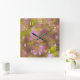 Wall clock featuring a cool abstract with different shades of pink of a pastel painting with texture. Created it by using a brush stroke brick like pattern and a flower etching look. Looking for more prints or products? Feel free to visit my store: http://www.zazzle.com/timelessmomentsphtgy