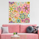 Premium Wrapped Canvas wall hanging decor printed with Spring Season Retro Flower Colours Seamless Pattern original hand drawn graphic design artwork illustration by TheFabricSeal print on demand shop at Zazzle.com #ZazzleMade ©️Original. https://www.zazzle.com/store/thefabricseal