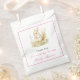 Pretty baby shower favour bag with an adorable squirrel and pink and yellow flowers. Perfect for a spring or summer baby shower. The words can be changed to suit your own details or requirements