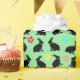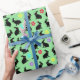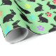 This wrapping paper roll is a pastel green covered with springtime bunny rabbits who are done in black silhouette in a sitting position with colourful flowers around their necks. Matching flowers are sprinkled about the sheet also.