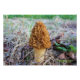 A Springtime Morel Mushroom shot closeup that's on a photo. That has brown,green, and dead grass.