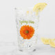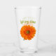 A colourful orange Gerbera Flower glass. The text is customisable. There are additional products like paper plates, placemats and much more available.