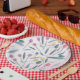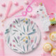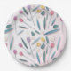 Beautiful spring paper plates displaying colourful tulips, daisies, and white background with teal markings. See store for matching themed tableware.