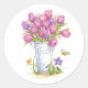 Tulip pail stickers are beautiful for Spring! In shades of pink and purple, they with add a special touch and brighten up to anyone"s day. Original watercolor artwork and design by Audrey Ascenzo.