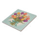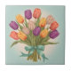 Vintage spring tulips bouquet with ribbon ceramic tile.