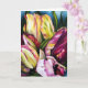 This is such a BEAUTIFUL greeting card, I have ordered it several times. The colors are so striking...it is hard to believe this is a silk painting that represent a real flower! color is magnificent