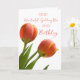 Birthday card for goddaughter with orange and pink spring tulips and thoughtful verse.