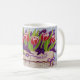 Start your day with the vibrancy of red tulips. How can anything go wrong? The design wraps around the mug. Vibrant red tulips in a white basket lined with linen. A perfect match to the note card for that special someone.
