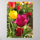 A beautiful variety of spring tulips at the Wooden Shoe Tulip Farm in Woodburn, Oregon. An up-close view of a pretty pink-purple tulip with other colorful tulips surrounding it. Photo taken April 2018.