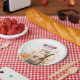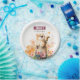 Cute birthday party paper plate featuring a cat celebrating spring. Customise this product by adding your party information.