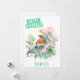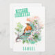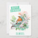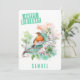 A cute birthday card featuring a flowery robin celebrating spring on the front with "Happy Birthday" in a white, all-caps bold font. Personalise the front by adding your name(s). The back of the card features space for your typed or handwritten message.