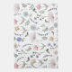 Kitchen towel with bright, cheerful spring watercolor doodle flowers in pastel hues.