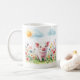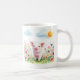 Mug featuring a watercolor Pig in a spring landscape. Customisable.