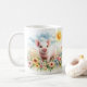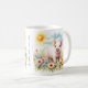 Mug featuring a watercolor Pig in a spring landscape. Customisable.