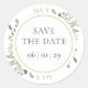 Spring Watercolour Greenery Leaves Save the Date Classic Round Sticker