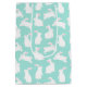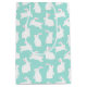 Adorable white bunnies with pink ears makes a fun pattern for spring and Easter gift bag. It has a customisable aqua background colour, but you can choose any colour you prefer. Wrap a gift for a rabbit or animal lover with this cute design!