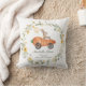 This adorable throw pillow features a cute bunny riding a carrot car framed with lush wildflower wreath.