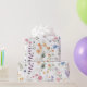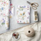 Beautiful boho-inspired wrapping paper featuring cheerful watercolor wildflowers in various shades of blush, pink, lavender, yellow, blue and green.