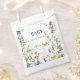 These elegant baby shower favour bags features beautiful spring wildflowers and the phrase "Baby in Bloom" written in a stylish contemporary script. You can personalise it with name and date. This design is suitable for both boys and girls. Simply click the edit/personalise button to customise it. Additional complementary items are also available.