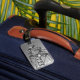 This was purchased as part of a 40th Birthday present for my nephew who is going to Vegas. It is made of high quality, very study and we decided only to put his name on the back of the tag, but you can add a full address if you so wish.