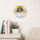 A portrait of a beautiful Springer Spaniel Dog is the feature on this clock. The image is placed on a retro, slightly distressed striped sunset background. Dark gold numbers and diamond shaped markers around the perimeter make the clock easy to read. Perfect for anyone who has lost their heart to a Spaniel.