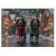 This festive design captures the joyful spirit of the holiday season, featuring an adorable dogs.Nestled in a winter wonderland, complete with a decorated Christmas tree, and beautifully wrapped presents. Snowflakes gently fall, adding a magical touch to the scene, while the vibrant colours of the holiday decorations create a warm and cheerful atmosphere.