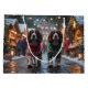 This festive design captures the joyful spirit of the holiday season, featuring an adorable dogs.Nestled in a winter wonderland, complete with a decorated Christmas tree, and beautifully wrapped presents. Snowflakes gently fall, adding a magical touch to the scene, while the vibrant colours of the holiday decorations create a warm and cheerful atmosphere.