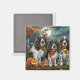 Unleash the spooky spirit with this eerie Halloween design featuring a pack of dogs under a dark, moonlit sky, surrounded by flying bats and glowing pumpkins. Perfect for those who love a touch of frightful fun with their furry friends!
