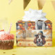 A watercolor-style painting of a cheerful dog sitting amidst a pile of vibrant fall leaves, surrounded by tiny pumpkins and scattered acorns. The dog wears a little pilgrim hat and beams with joy, capturing the spirit of Thanksgiving. In the background, soft harvest fields and golden-hued trees create a peaceful countryside ambiance. Gentle textures and warm, muted autumn tones give the scene a cosy, nostalgic feel perfect for celebrating the beauty of the season.