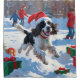 A cheerful Springer Spaniel runs happily through the snowy winter scene, wearing a festive red Christmas hat. This lively design highlights the breed’s long ears, athletic build, and affectionate nature while capturing the warmth and joy of the holiday season. A heartwarming winter moment full of festive charm.