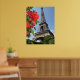 A springtime picture of the Eiffel Tower taken from an arch of flowers nearby. Perfect for any room in the house.