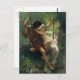 Springtime (Primavera) by Pierre Auguste Cot, oil on canvas 1873, is a French classical academic painting of two young people sitting in a swing in a sunny, spring forest landscape. Cot paints a sentimental image of flowering first love between a young man and woman which combines both modern realism and inspiration from classical antiquity, as in the girl’s gaze at her love and in the carefully modelled drapery. The smooth, academic realist technique captures effects of light and shadow that border on the photorealistic, tempered by the gentle curves of classical drawing. Springtime was commissioned as a type of companion piece to Cot’s other large painting of young lovers, The Storm, both of which became enormously famous in Europe and America.