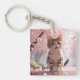 This acrylic keychain is shown with a cute cat loving springtime print.