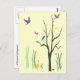 This postcard creates a colourful, whimsical spring mood. Birds are flying and are perched in the tree. Butterflies hover in the warm air. A duck waddles in the grass. There is even a tiny snail on the ground.
