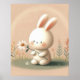 This artwork portrays an adorable white rabbit holding a delicate daisy flower. The rabbit's soft fur, rosy cheeks, and long ears create a sense of warmth and innocence. The illustration is rendered in a gentle and calming colour palette, evoking a sense of peace and tranquillity