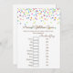 Sprinkle Baby Shower Game w answer back 5x7 size