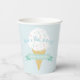 This cute "here's the scoop" boy's birthday paper cup features a white vanilla ice cream cone with sprinkles in pastel colours on a light turquoise blue/green background. Personalise for your needs. You can find matching products at my store.